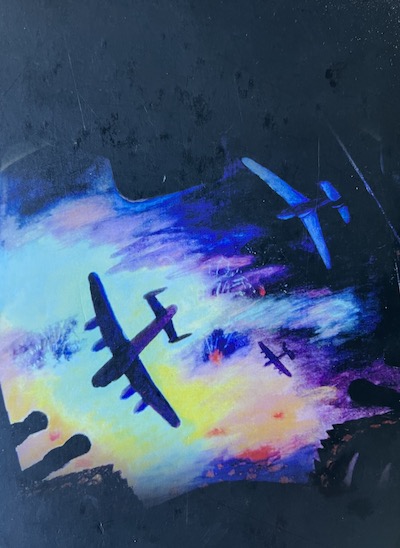 It was an awesome sight and almost indescribable at times because you had the fires on the ground, the searchlights, the Flak coming up, the fighter flares over the top, and in between that you’re there and the fighters are there. The flares and streaks of light from the anti-aircraft guns were all vivid colours. You see fire on the ground, explosions on the ground, explosions in the air, aircraft going down on fire. You see an aircraft blow up, tracer bullets flying all over the sky, and the chandelier of fighter flares which lit up the sky as well. It was absolutely a picture of flame. You didn’t have a lot of time to think about that, and you knew you had to go through that, because that was your course. (Bomber Crew)