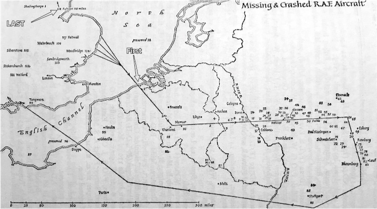 Above: Map of Nuremberg Raid Losses/The Deadly Long Leg.